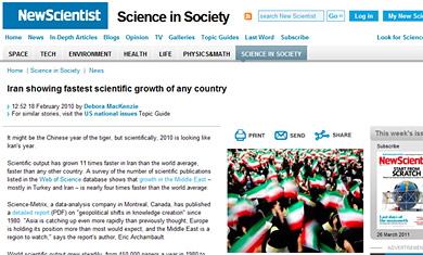 گزارش نیوساینتیست از پیشرفتهای علمی ایران