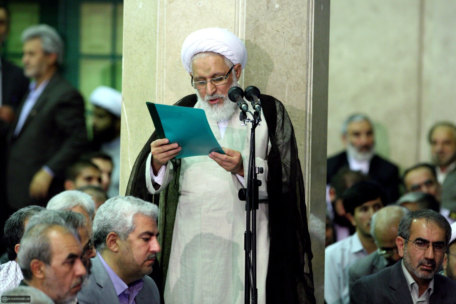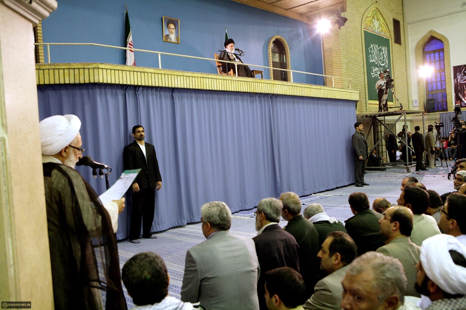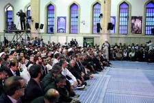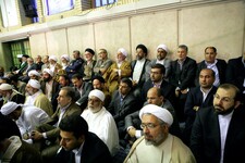 آیتالله خامنهای در این دیدار: امروز قوای سهگانه بویژه دولت حقاً و انصافاً در حال خدمت و تلاش هستند و ملت و رهبری همواره از خط کار و خدمت در کشور حمایت خواهند کرد اما هرجا که رهبری احساس کند از مصلحت بزرگی غفلت می شود، وارد خواهد شد و رهبری تا زنده است هیچگاه نخواهد گذاشت، در حرکت عظیم ملت ایران بسوی آرمانها، ذرهای انحراف ایجاد شود.