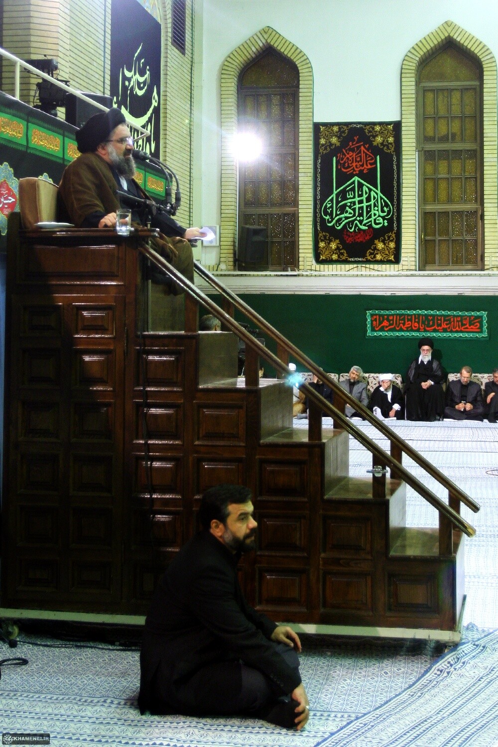 در شب شهادت دخت گرامی پیامبر اسلام حضرت فاطمه زهرا(سلامالله علیها)، مراسم عزاداری و سوگواری بانوی عصمت و طهارت، با حضور حضرت آیتالله خامنهای رهبر معظم انقلاب اسلامی در حسینیه امام خمینی(ره) برگزار شد.
