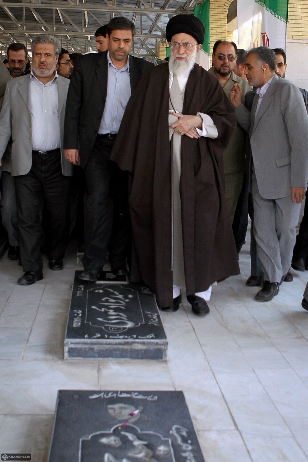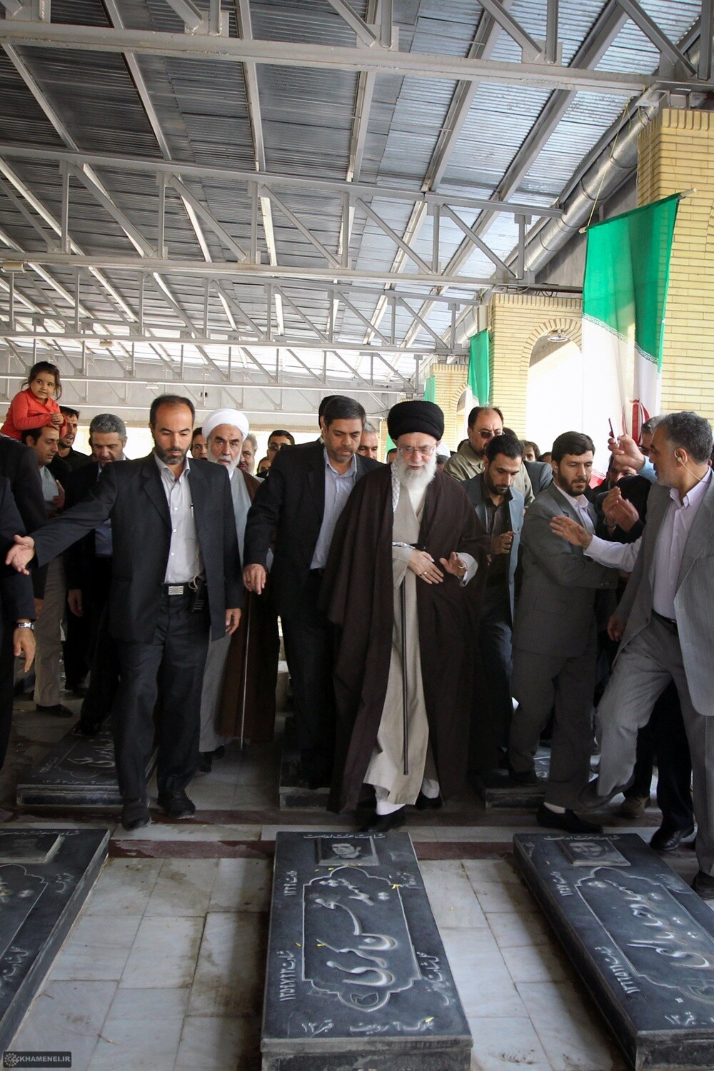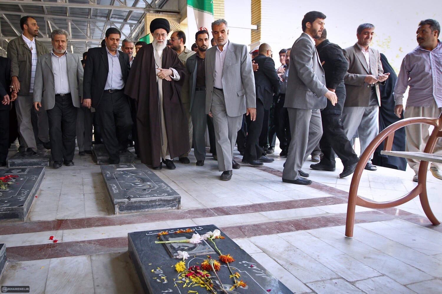 حضرت آیت الله خامنه ای سپس بر مزار شهدای والا مقام کرمانشاه حضور یافتند و با قرائت فاتحه، یاد و خاطره شهداء این شهر را گرامی داشتند.