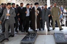 حضرت آیت الله خامنه ای سپس بر مزار شهدای والا مقام کرمانشاه حضور یافتند و با قرائت فاتحه، یاد و خاطره شهداء این شهر را گرامی داشتند.