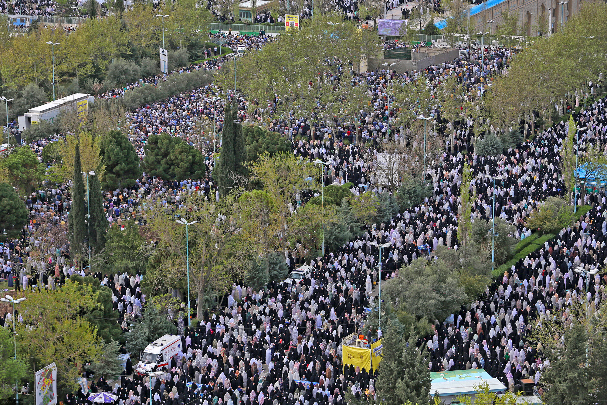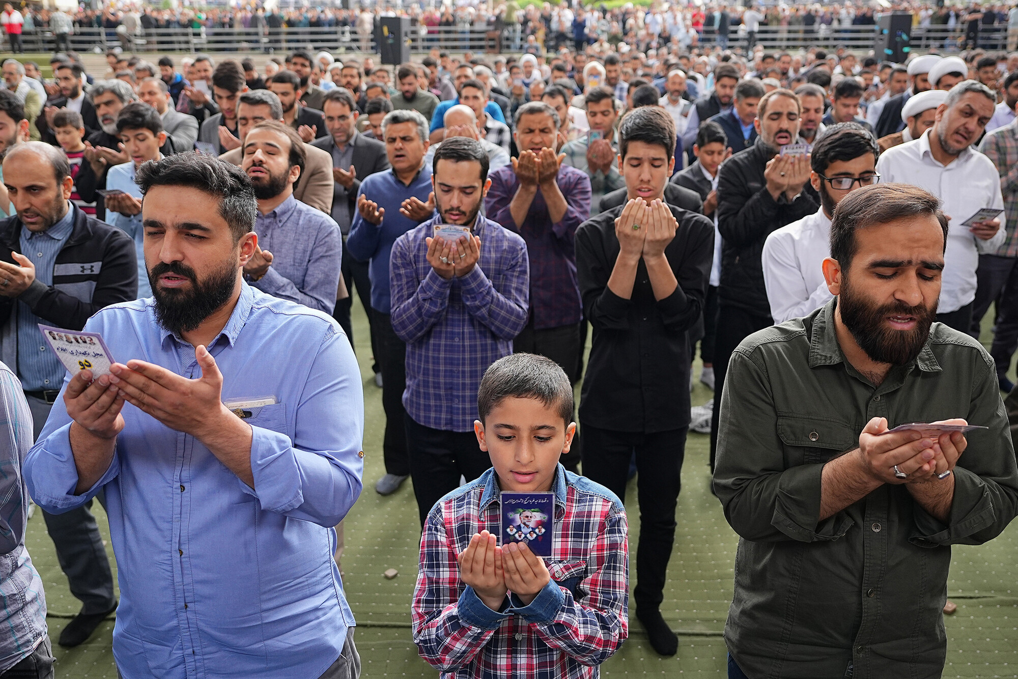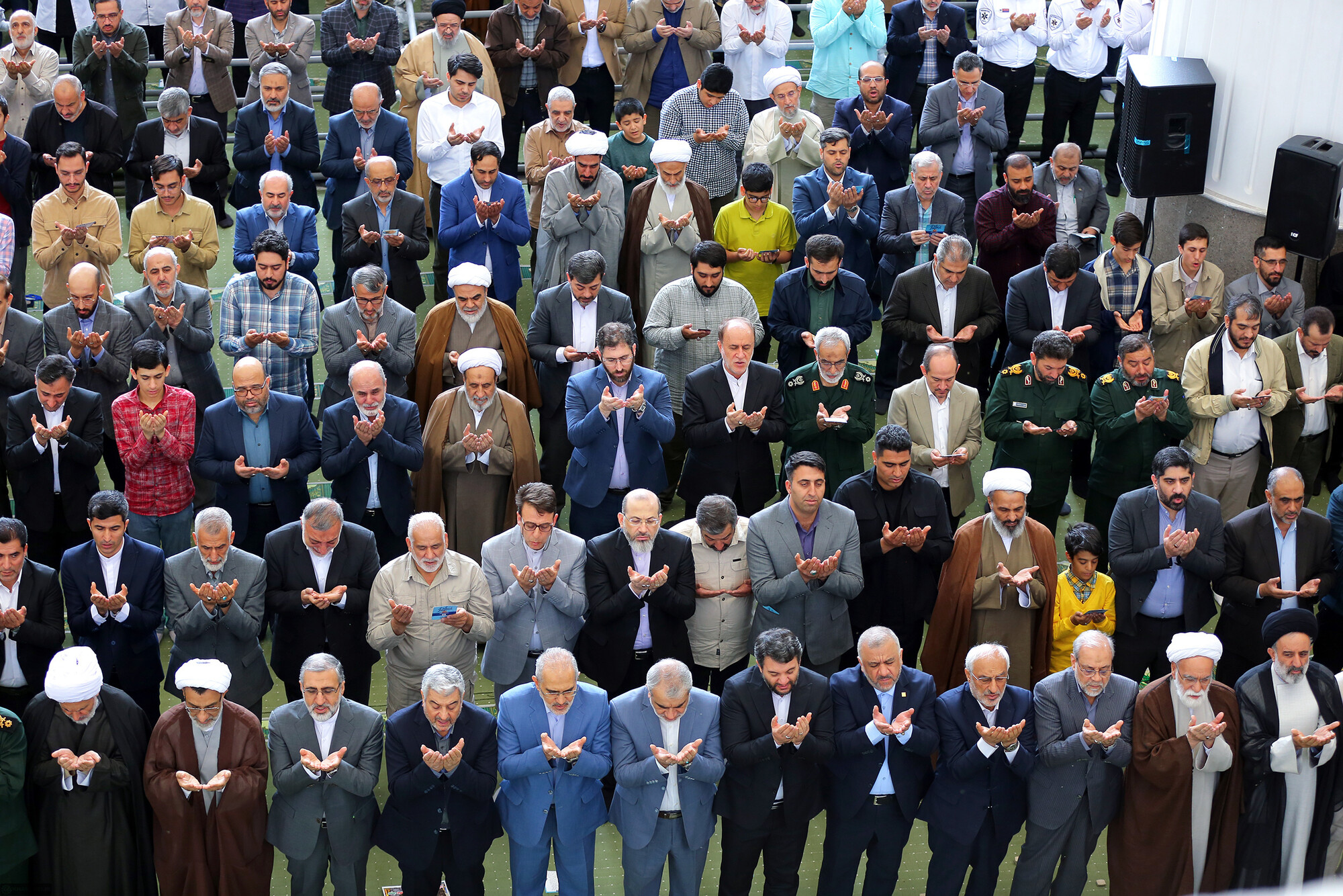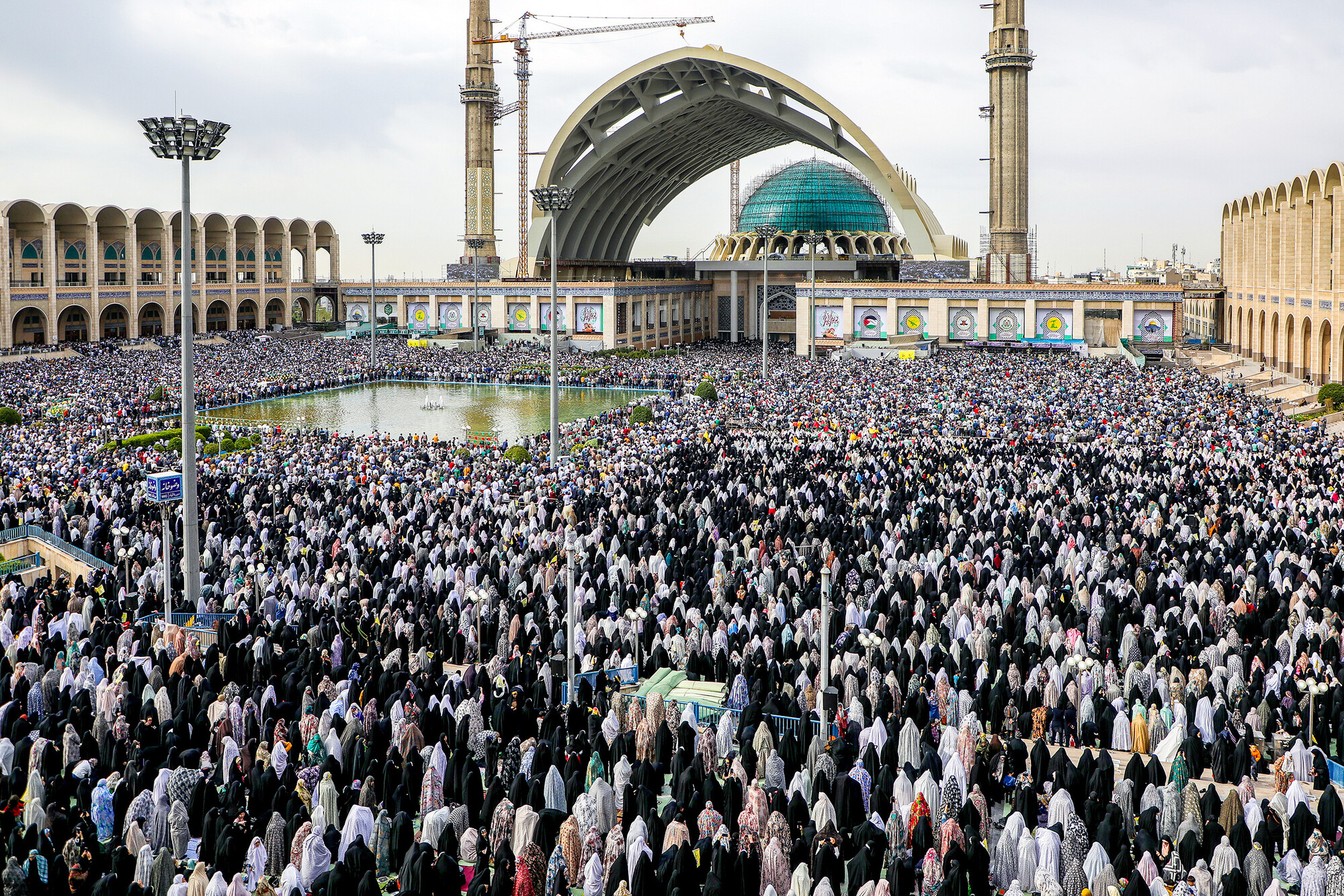 همزمان با اقامهی نماز باشکوه عید سعید فطر در سراسر کشور، هزاران نفر از مردم مؤمن تهران، صبح امروز نماز عید فطر را به امامت رهبر انقلاب اسلامی در مصلای امام خمینی (ره) اقامه کردند.پايگاه اطلاعرسانی دفتر حفظ و نشر آثار حضرت آيتاللهالعظمی سيدعلی خامنهای (مدظلهالعالی) - مؤسسه پژوهشی فرهنگی انقلاب اسلامی