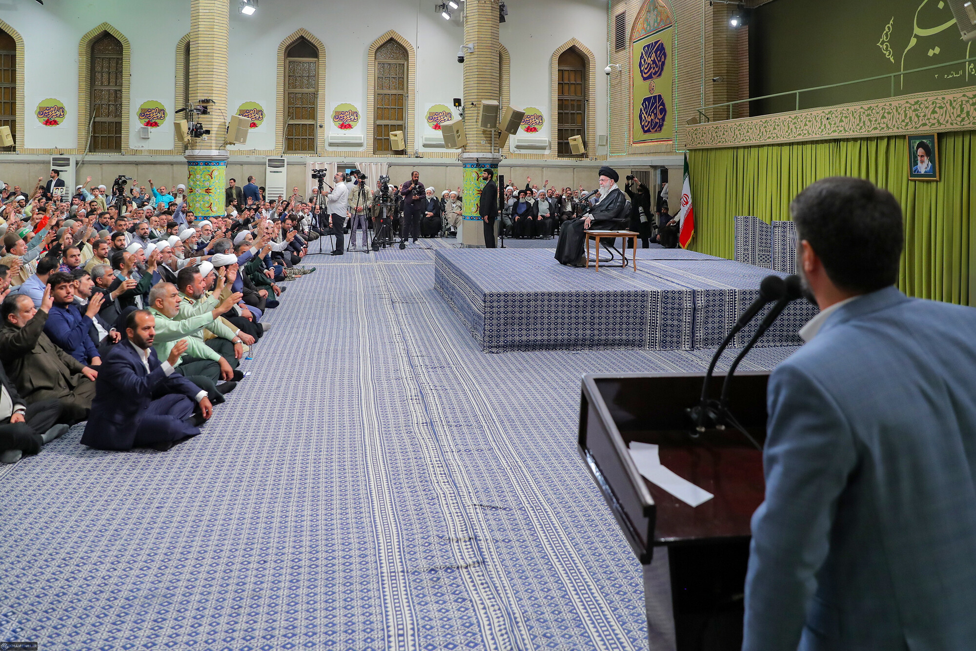 در سالروز عید سعید غدیر خم و در آستانهی انتخابات ریاست جمهوری چهاردهم، هزاران نفر از مردم استانهای گیلان، مرکزی، کهگیلویهوبویراحمد، خراسان شمالی و خانوادههای شهدا و خدام آستان مقدس حضرت شاهچراغ فارس، صبح امروز (سهشنبه) با حضور در حسینیه امام خمینی(ره) با رهبر معظم انقلاب اسلامی دیدار کردند.