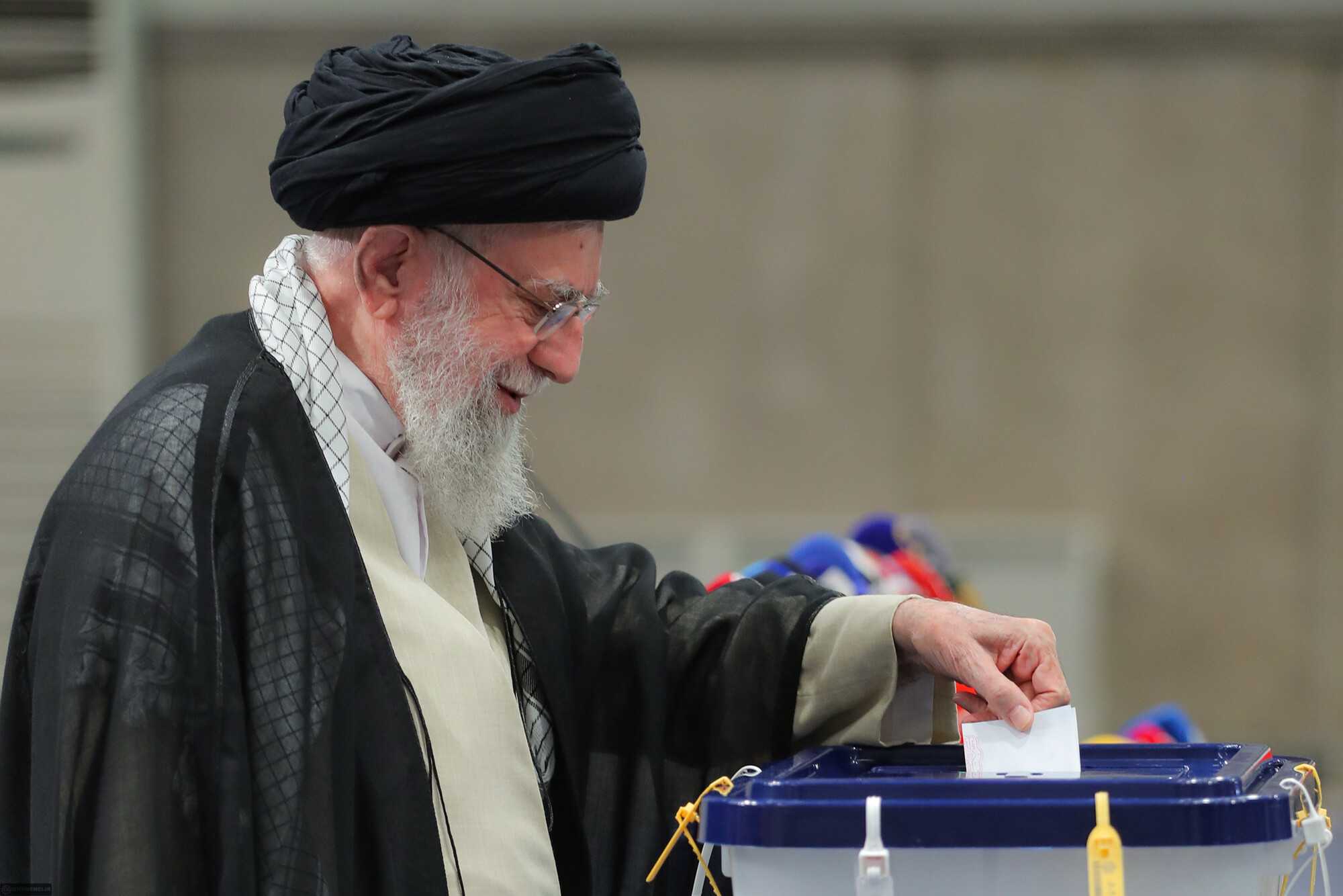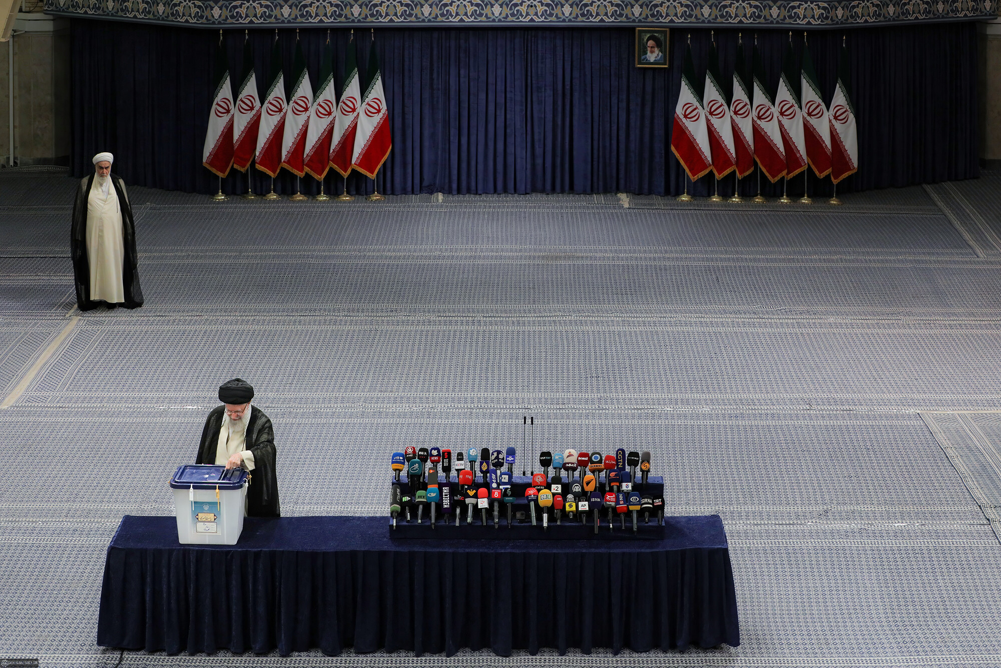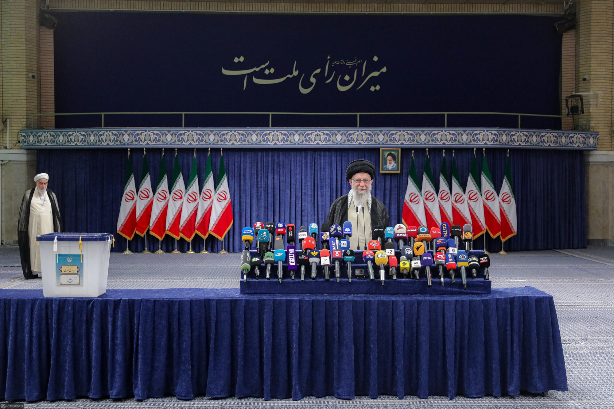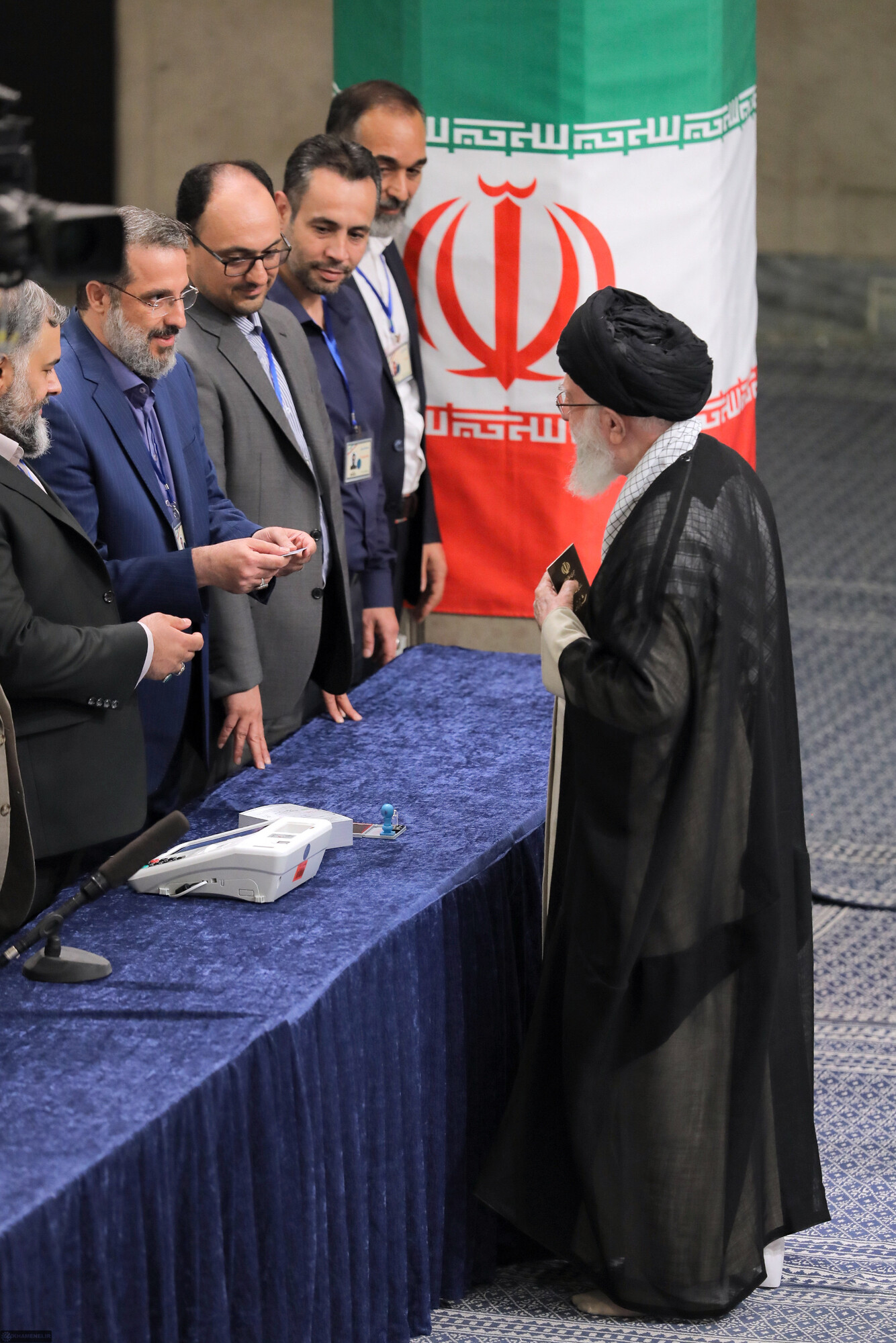 حضرت آیتالله خامنهای رهبر انقلاب اسلامی در اولین دقایق آغاز رأیگیری چهاردهمین دورهی انتخابات ریاست جمهوری با حضور در محل صندوق سیار ۱۱۰ در حسینیهی امام خمینی (رحمهالله)، رأی خود را به صندوق انداختند.