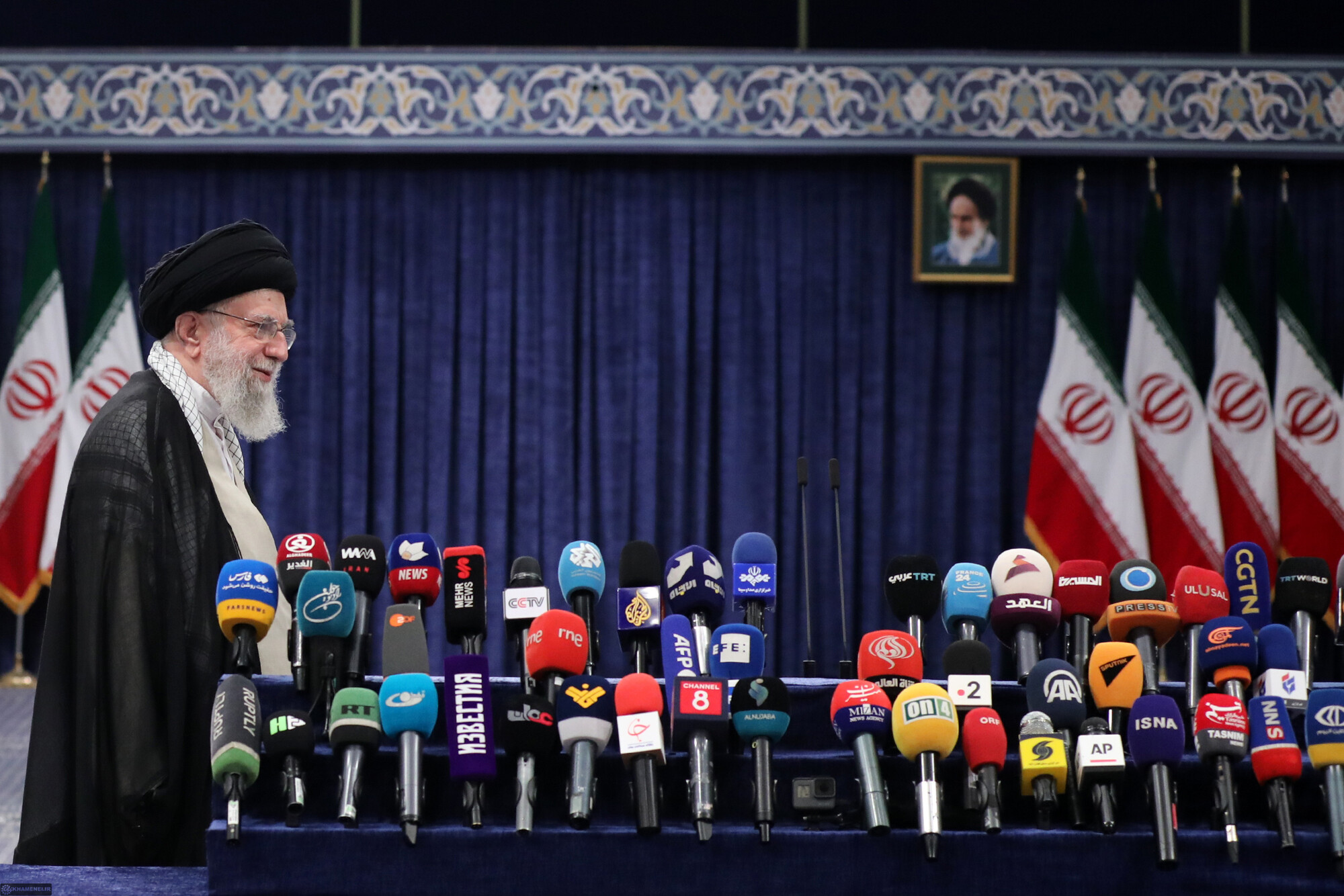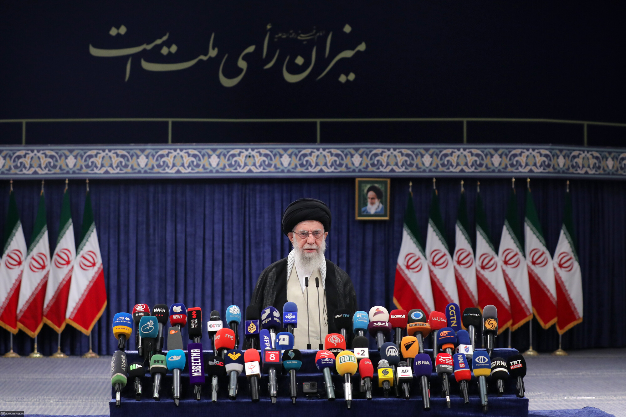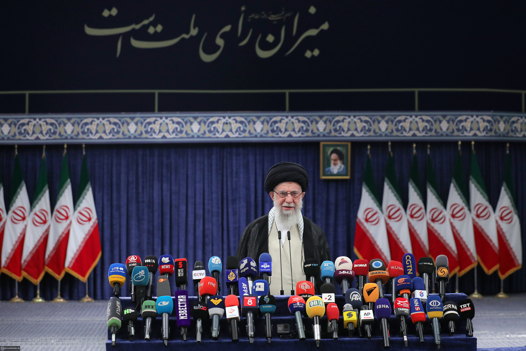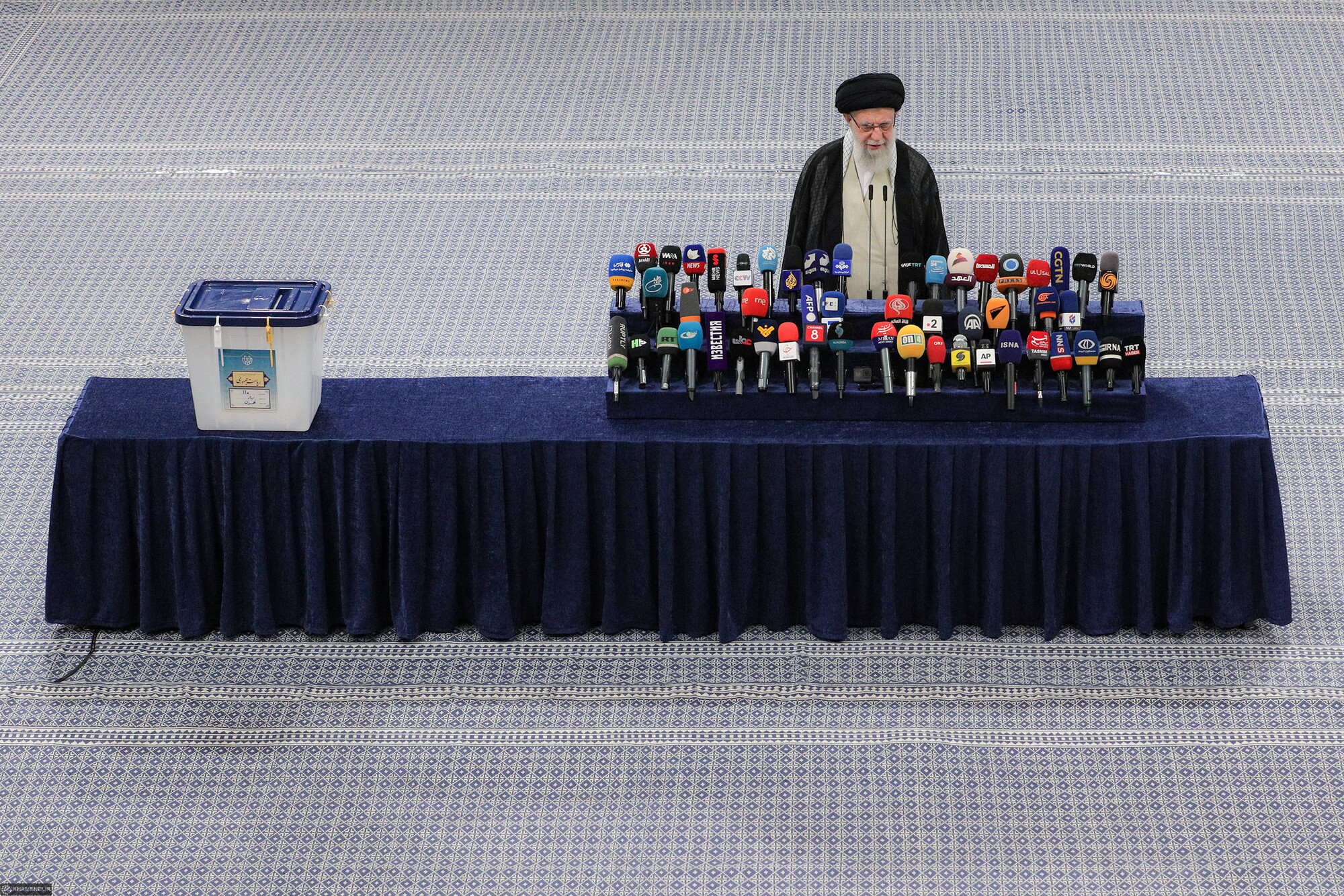 حضرت آیتالله خامنهای رهبر انقلاب اسلامی در اولین دقایق آغاز رأیگیری چهاردهمین دورهی انتخابات ریاست جمهوری با حضور در محل صندوق سیار ۱۱۰ در حسینیهی امام خمینی (رحمهالله)، رأی خود را به صندوق انداختند.