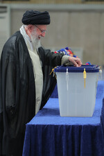 حضرت آیتالله خامنهای رهبر انقلاب اسلامی در اولین دقایق آغاز رأیگیری چهاردهمین دورهی انتخابات ریاست جمهوری با حضور در محل صندوق سیار ۱۱۰ در حسینیهی امام خمینی (رحمهالله)، رأی خود را به صندوق انداختند.