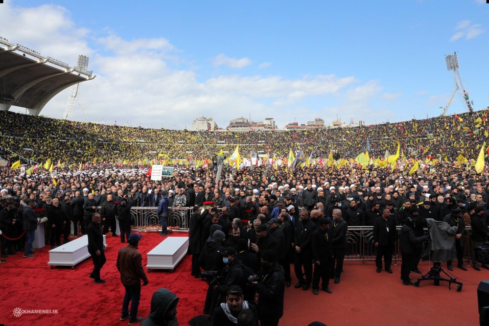 مراسم تشییع پیکر مطهر شهیدان سیدحسن نصرالله و سیدهاشم صفیّ الدّین ظهر امروز با قرائت پیام حضرت آیتالله خامنهای در بیروت برگزار شد.