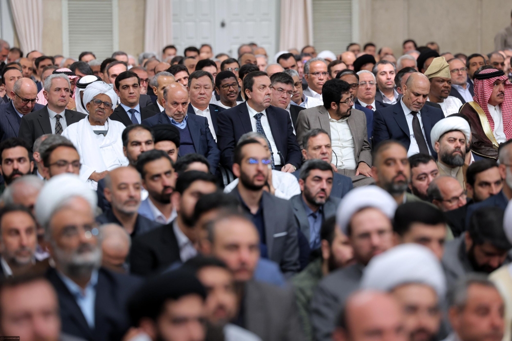 بهمناسبت عید سعید فطر، جمعی از مسئولان نظام و سفرای کشورهای اسلامی، پیش از ظهر امروز (دوشنبه) در حسینیهی امام خمینی(ره) با رهبر انقلاب اسلامی دیدار کردند.