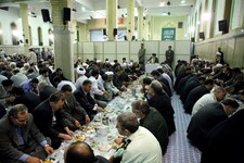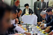 آنچه مشاهده میکنید، تصاویری است از حاشیهی دیدار مسئولان نظام جمهوری اسلامی با حضرت آیتالله خامنهای. این مراسم با تلاوت کلامالله مجید آغاز شد، سپس رییسجمهور به ارائه گزارش پرداخت و پس از آن رهبر معظم انقلاب برای میهمانان، سخنرانی کردند. اقامه نماز جماعت مغرب و عشا و صرف افطار، پایان بخش این ضیافت رمضانی بود.