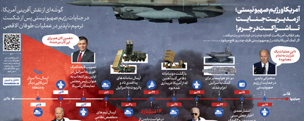 رسانه KHAMENEI.IR در اطلاعنگاشت زیر نگاهی به نقشآفرینی آمریکا در جنایات رژیم صهیونیستی پس از شکست ترمیمناپذیر در عملیات طوفان الاقصی داشته است.