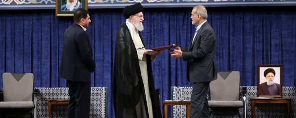حضرت آیتالله خامنهای رهبر انقلاب اسلامی طی حکمی، با تنفیذ رأی ملت ایران در انتخابات، جناب آقای دکتر مسعود پزشکیان را به عنوان ریاست جمهوری اسلامی ایران منصوب کردند.